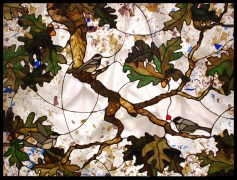 On this panel there were hand-painted pieces that were being processed while I was soldering the piece together, so I just left the panel with bird-shaped holes.
