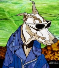 We find that a high percentage of requests for custom stained glass patterns and windows are for beloved pets. Never should the client be satisfied to have just any dog of that breed represented, but always must it look exactly like their best pal. Unfortunately, often the window/pattern is a memorial to that pet and at times the photography you have to work with is not the best. The glass artist must select just what it is in the photo that makes this animal look different from any other of its kind. Some people call it the soul or essence of the animal. We find most of the personality of the pet is found in the eyes. Once you draw the eyes properly and capture them in just the right glass, the rest is muscle structure and glass color choice.