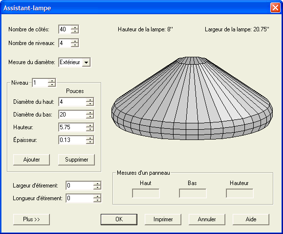 Si vous avez déjà tenté de dessiner votre propre lampe à panneaux, vous avez rapidement compris que les calculs mathématiques nécessaires pour déterminer la taille de chaque panneau peuvent être un défi. Plutôt que de ressortir vos vieux livres de trigonométrie, laissez l'assistant lampe faire ces calculs pour vous!