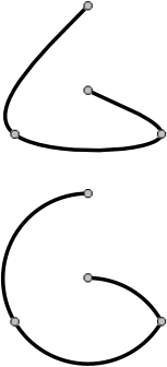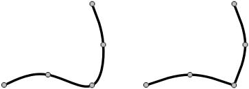 As you know, the way to draw a line is to specify the location of knots and to let the computer calculate the shape of a smooth line that passes through them. The smoothness property is important. For example, consider these figures:
